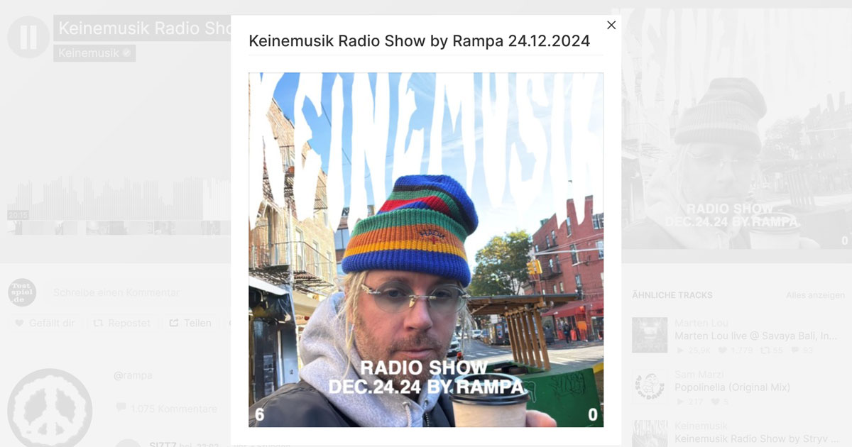 In seiner ansonsten auch absolut hörenswerten Keinemusik Radio Show vom 24.12.2024 (Tracklist) fährt Rampa das „Buschtaxi“ bei 13:30 ab. Mit auf dem Mix ist auch Rampas „Neverender“ Remix enthalten, den ich mir sogar auf Vinyl zulegt habe. Sunday Vibes.