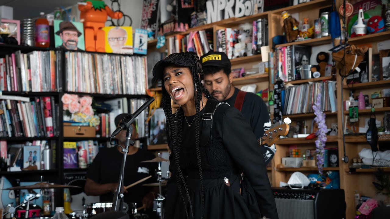 Die Live-Band, zu der George Lewis Jr. (alias Twin Shadow) am Bass und Schlagzeuger Chuck Treece gehörten, der mit Santigold schon bei Stiffed und schon mit allen von Bad Brains bis Billy Joel zusammengearbeitet hat, wurde eigens für das Tiny Desk Concert zusammengestellt.