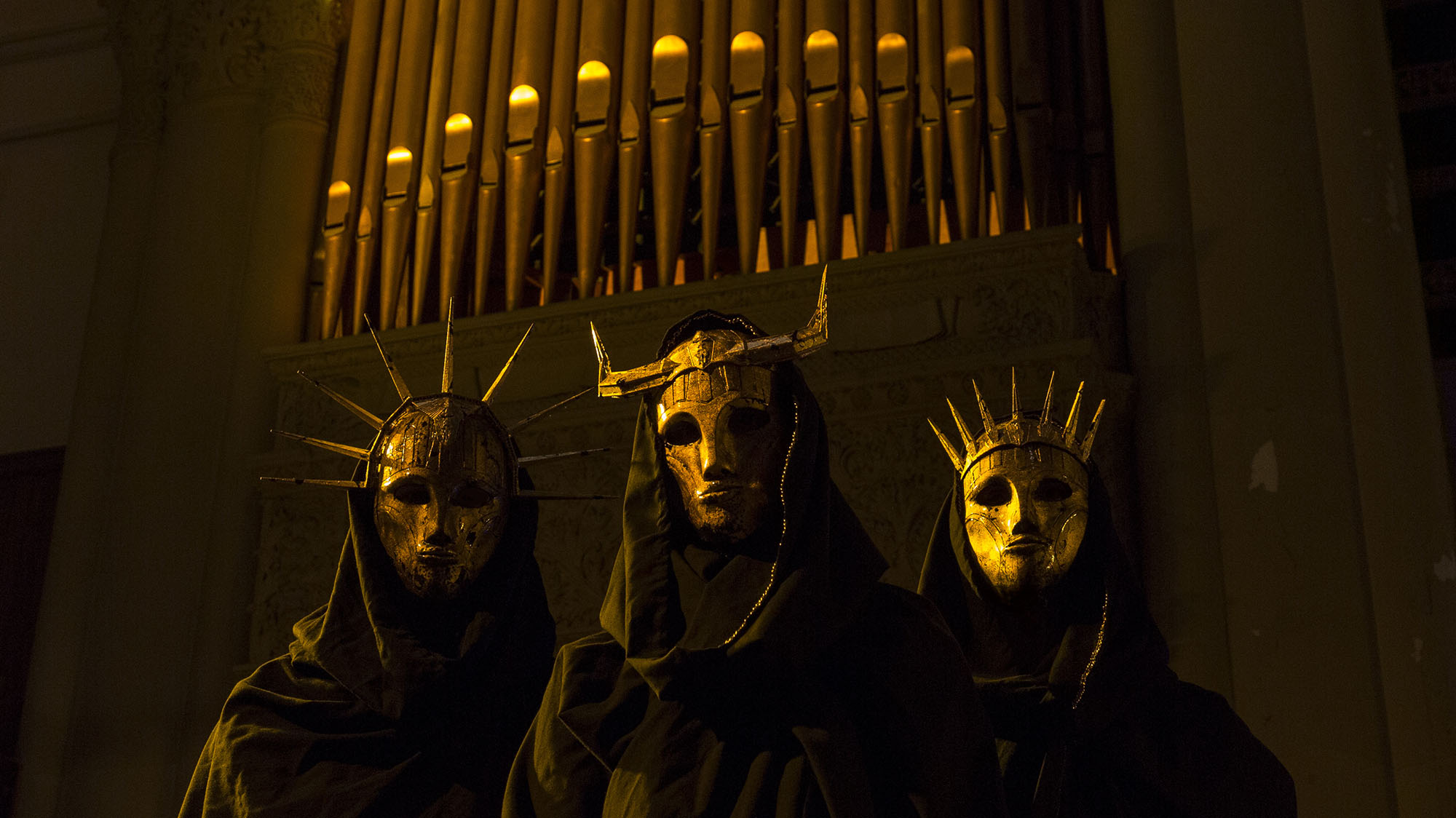 Mein Wunsch diese Band, in ihren schwarzen Mänteln verhüllt und mit güldenen Masken anonymisiert, einmal live zu sehen, stieg mit jedem Hören ihrer Songs über “das Chaos, die Menagerie, die Gefahren und Würde der großartigstens Stadt der Welt (New York)” ins Unermessliche. Und nun kommen sie auf Tour.